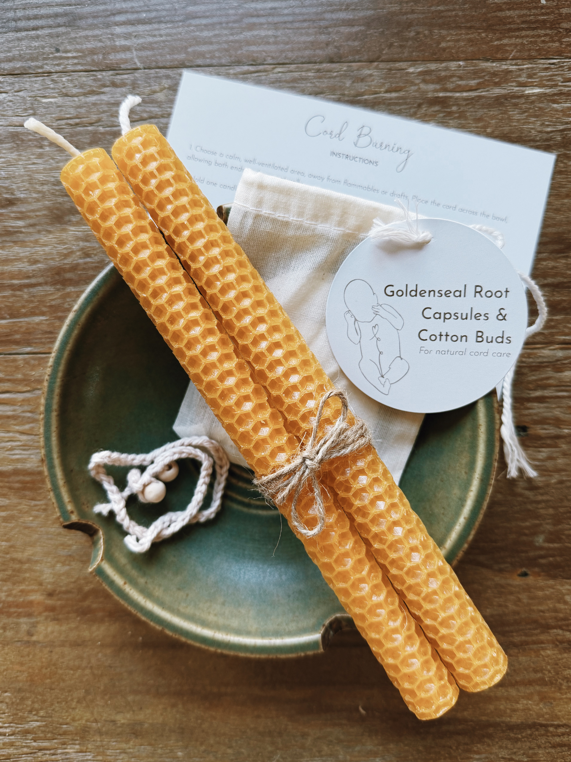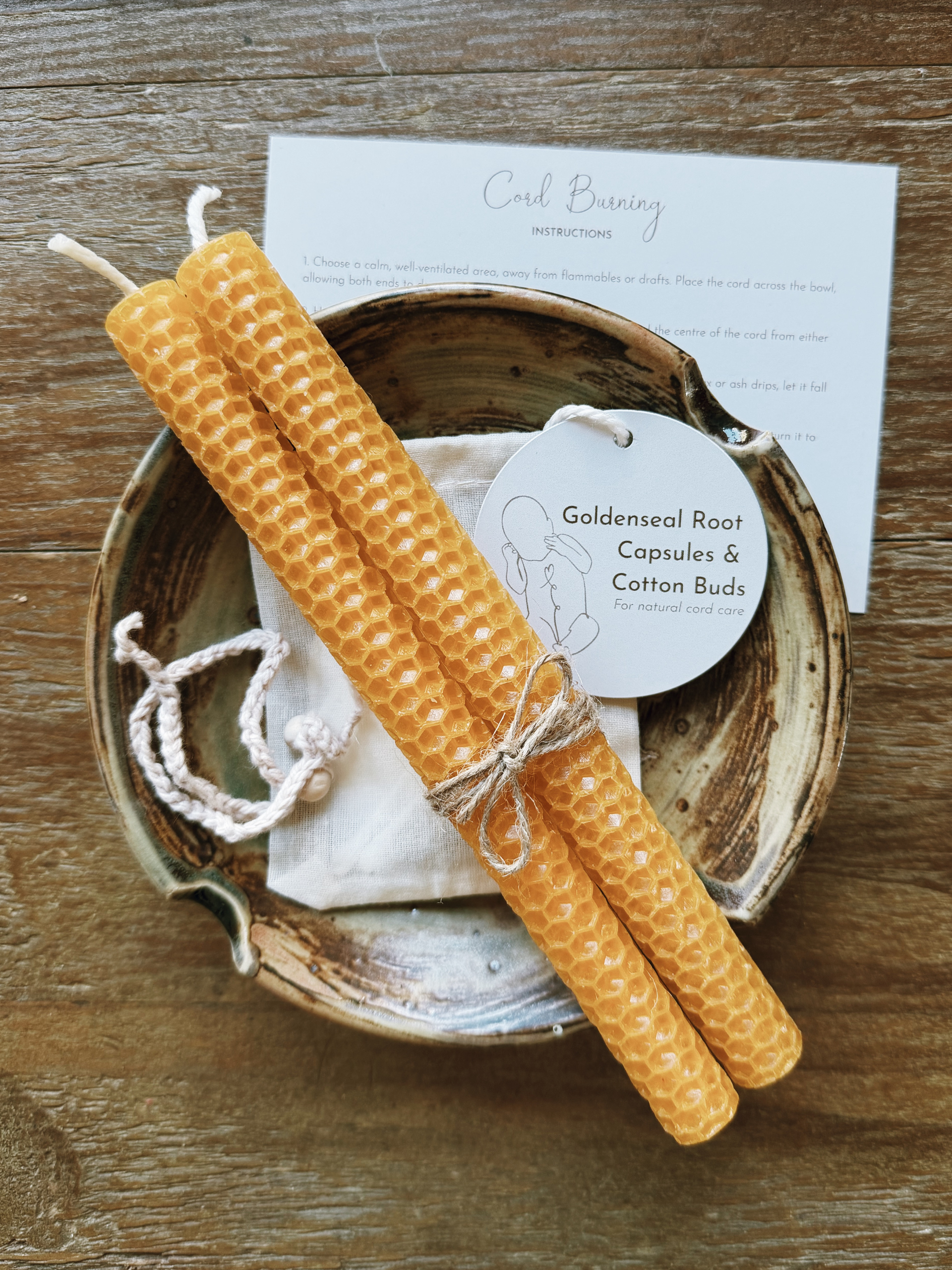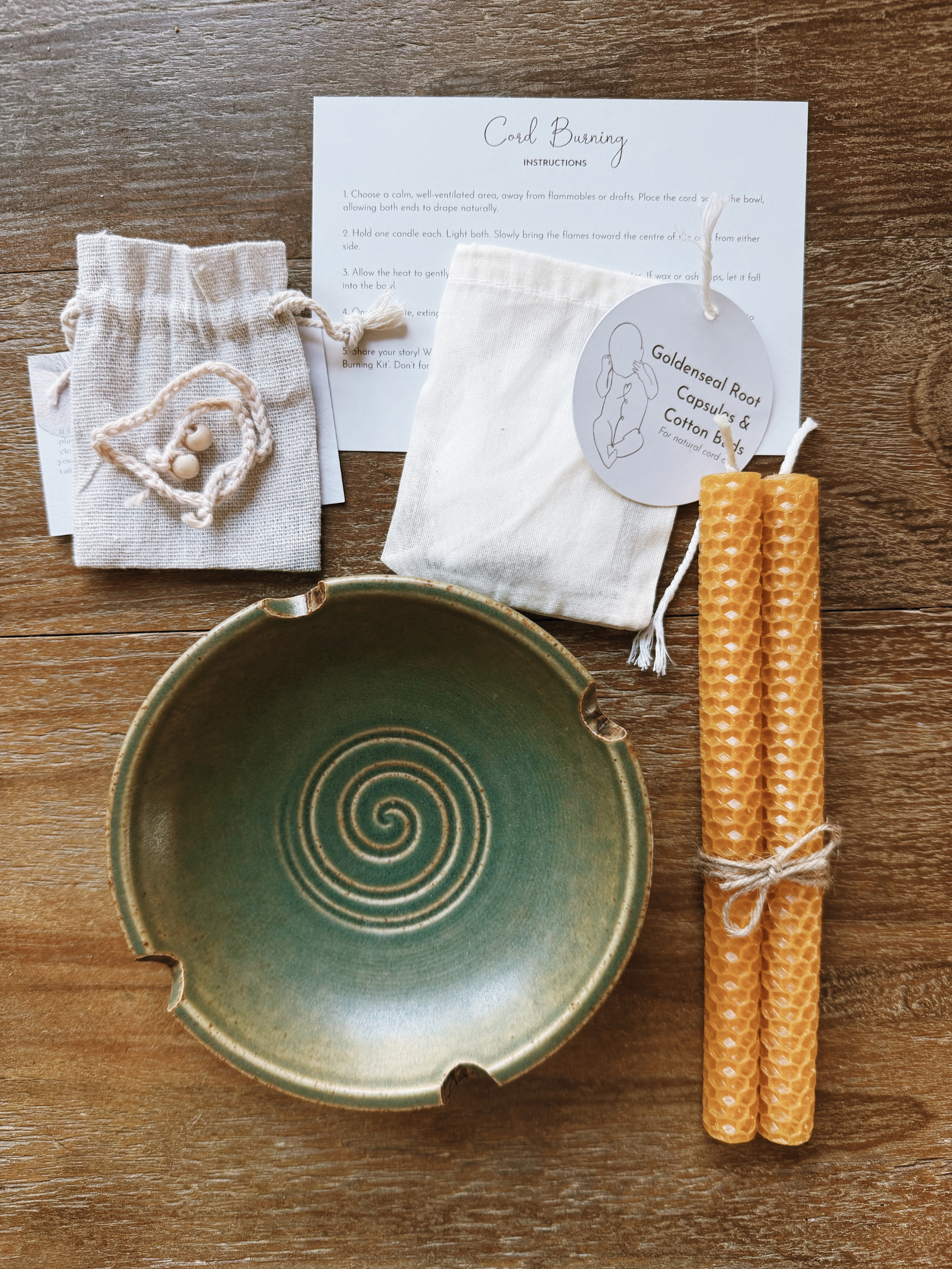 Instruction card: with clear, gentle steps for cord burning