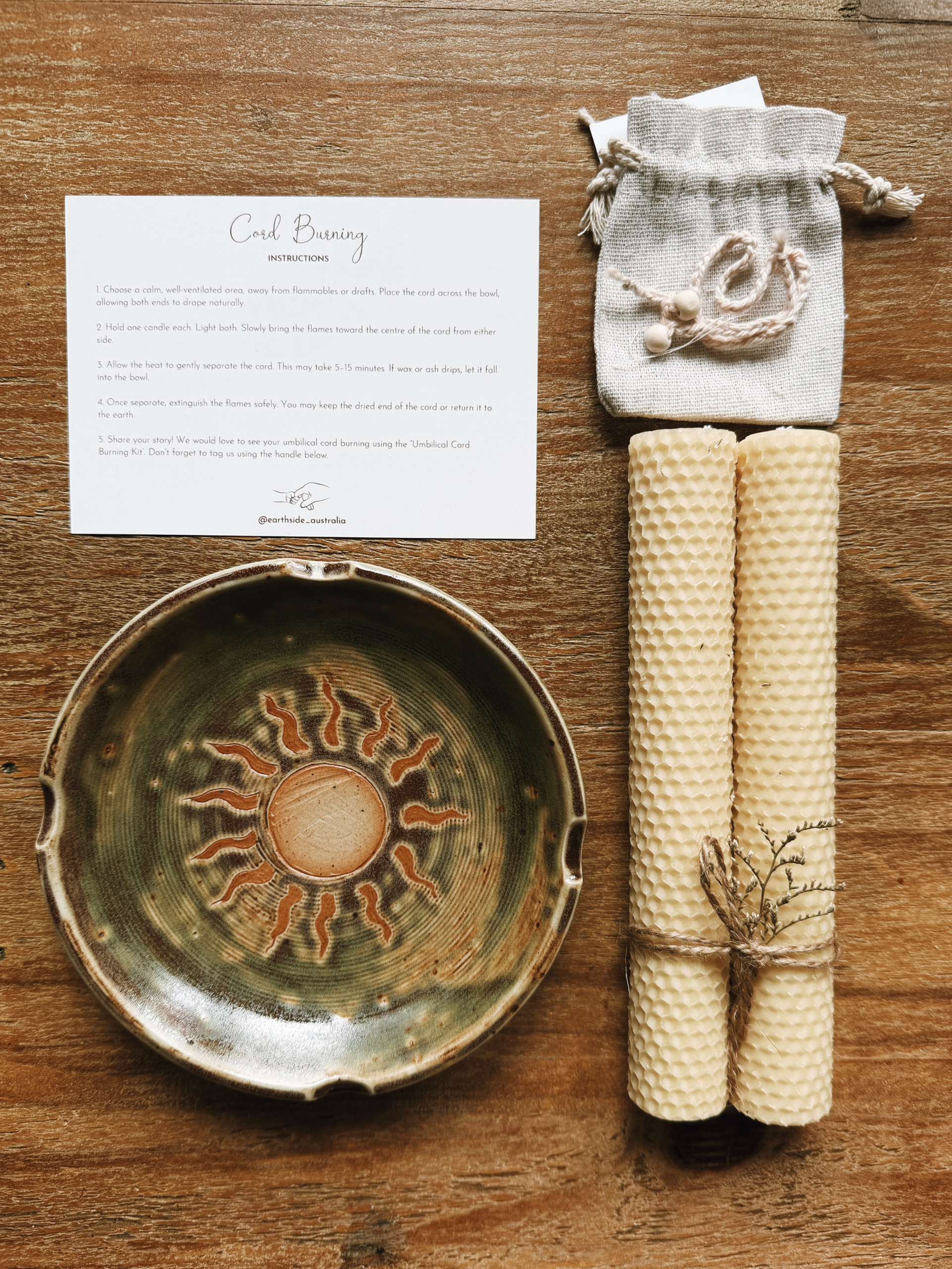 • Instruction card: with clear, gentle steps for cord burning