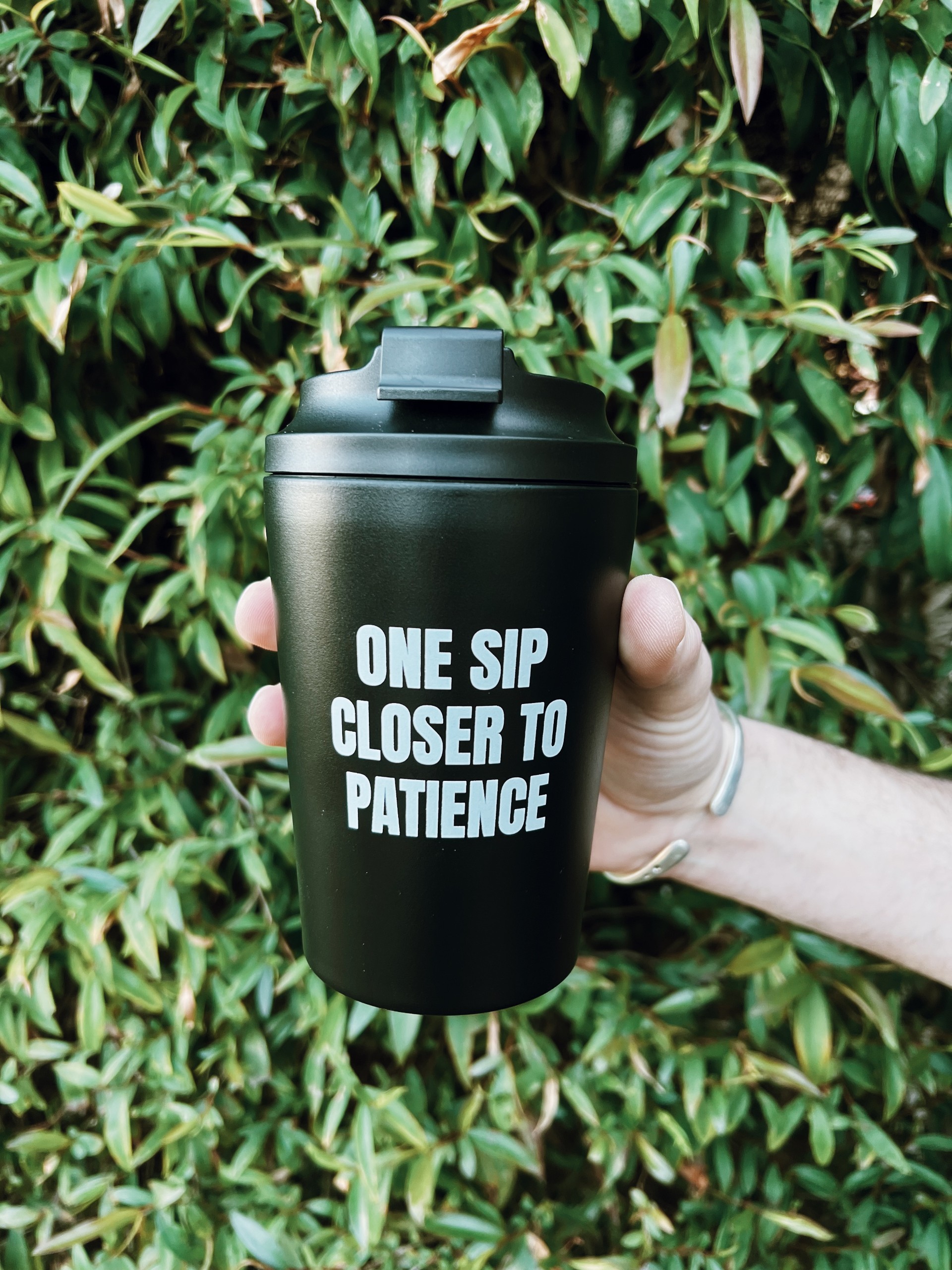 “One Sip Closer to Patience” insulated mug for the long days (and nights).