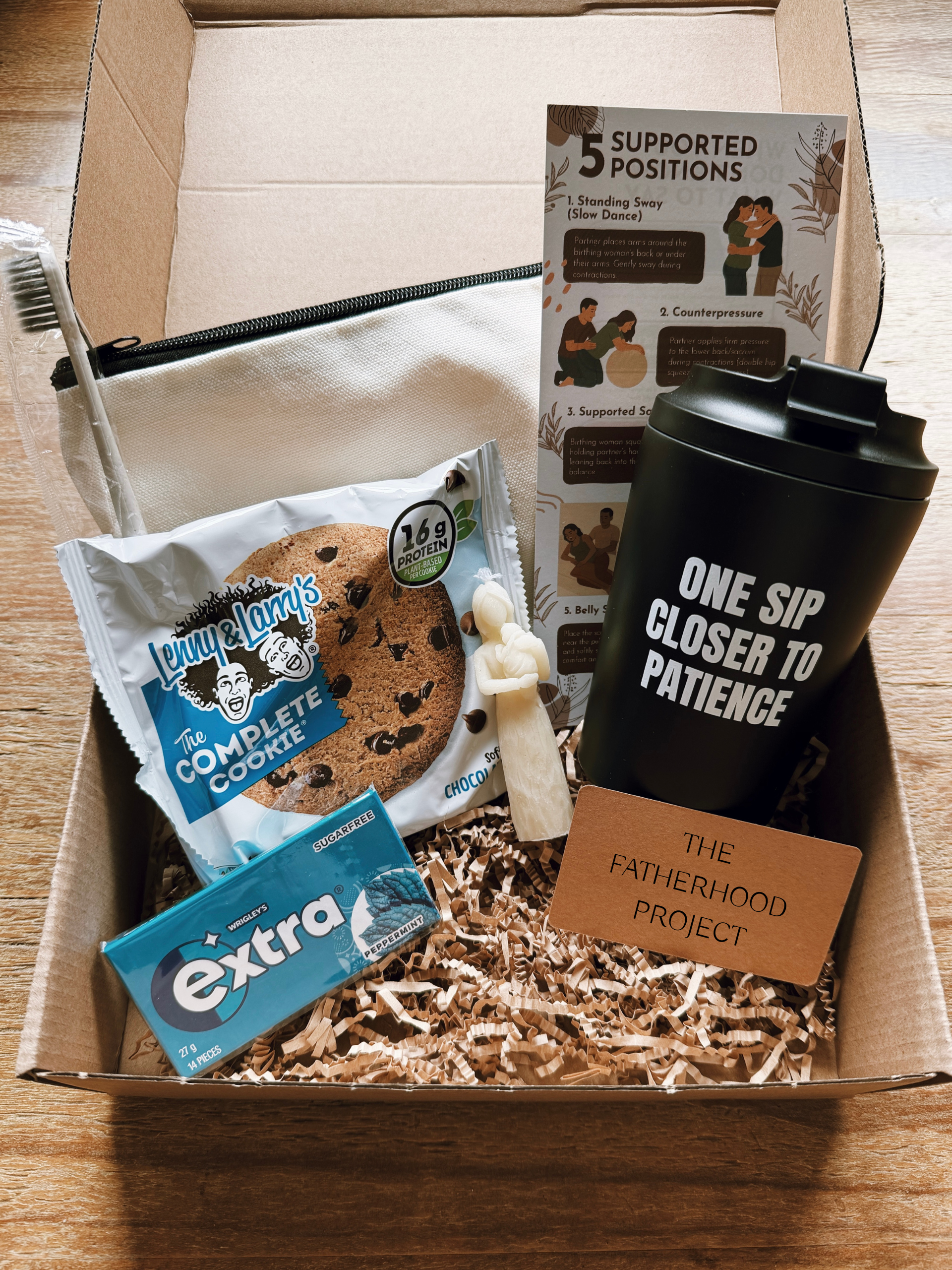 Birth Partner Support Kit – practical, pocket-sized tools to keep him focused and calm.